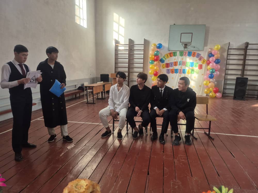 Окуу жайынын спорт залында окуу жайындагы жаштар иштери боюнча комитетинин төрайымы «Эне тилин барктайлы» аталышындагы тайпалар арасында конкурс өткөрдү.